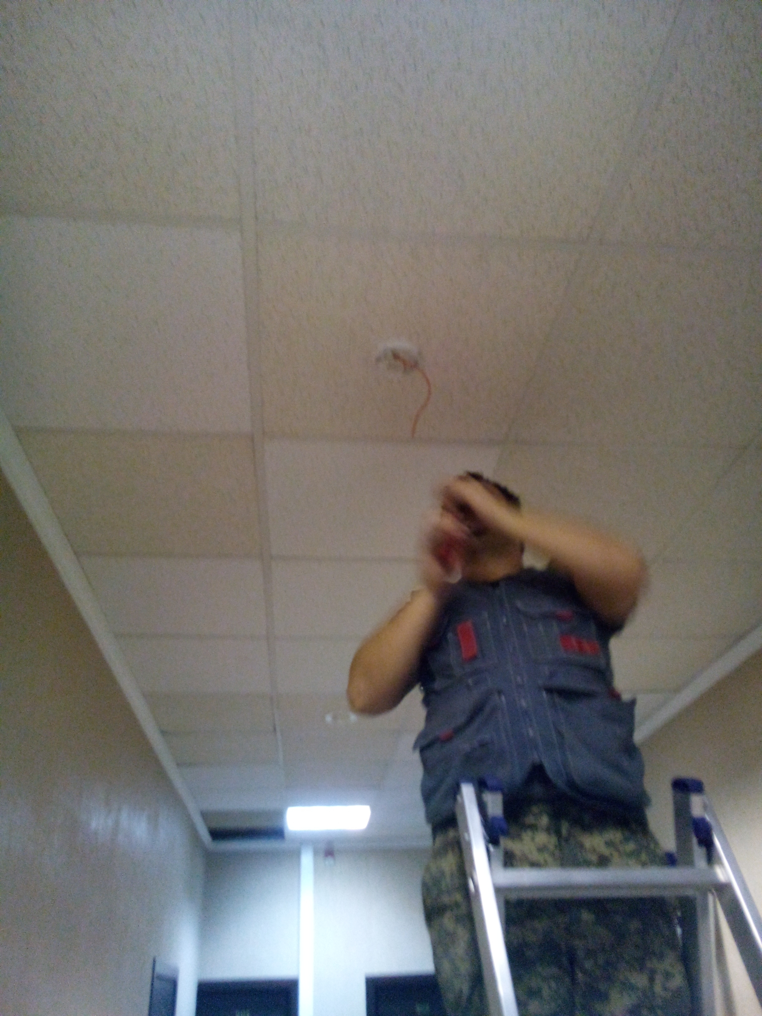 Монтаж дымового датчика на навесной потолок.